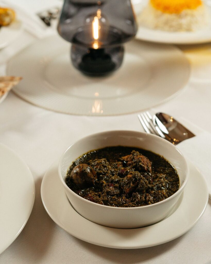 A traditional Persian lamb stew slow-cooked with chickpeas, beans, potatoes, tomatoes, and dried limes. Served in a clay pot and enjoyed in two parts: first the broth, then the softened ingredients mashed together. A rustic dish that warms the soul.
